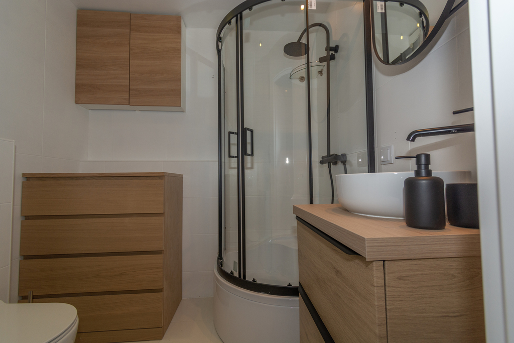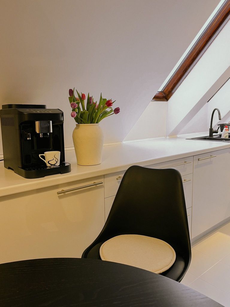 - otwarta kuchnia w pełni wyposażona między innymi w zmywarkę, płytę indukcyjną, piekarnik, lodówko zamrażarkę