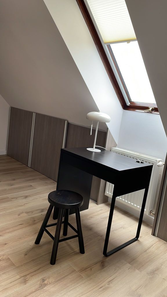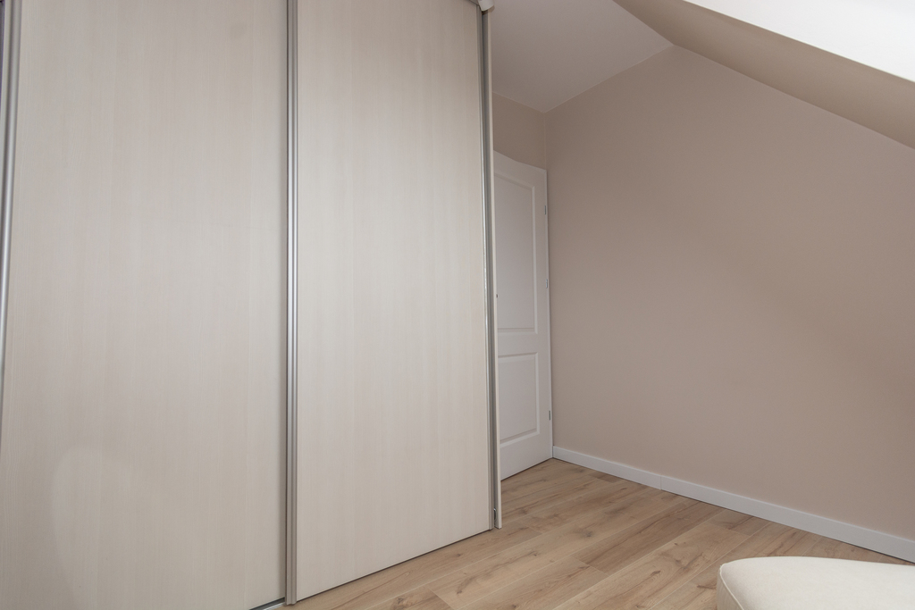 - duży pokój ze skosami o powierzchni 32m2 wyposażony w zabudowę skosów.