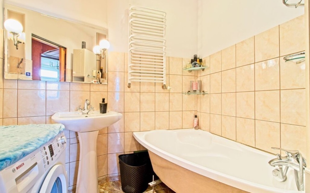 Łazienki- funkcjonalne wyposażenie, wanna, pralka. Osobno toaleta