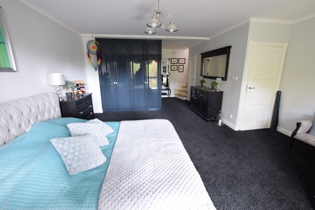 - II kondygnacja - bardzo duży pokój sypialny ( z wyjściem na balkon/taras), łazienka z kabiną prysznicową i toaletą, pomieszczenie gospodarcze,