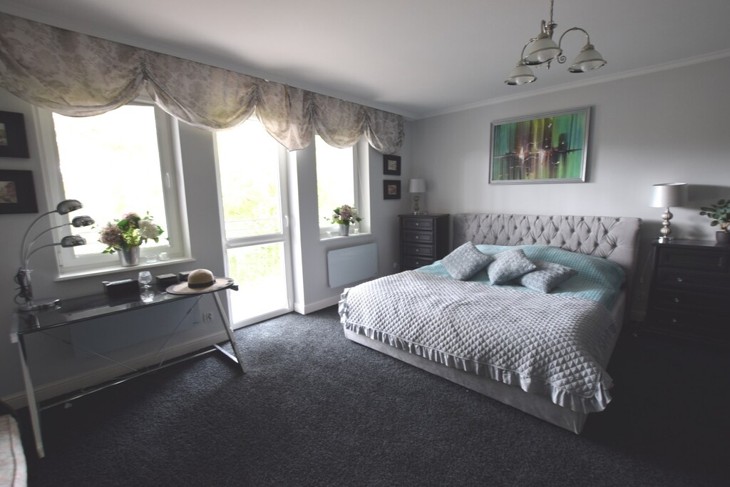 Apartament o podwyższonym standardzie, bardzo gustownie urządzony. Przyjemna kolorystyka zgodna z najnowszymi trendami wyposażenia wnętrz. Zabudowa stała o podwyższonym standardzie.