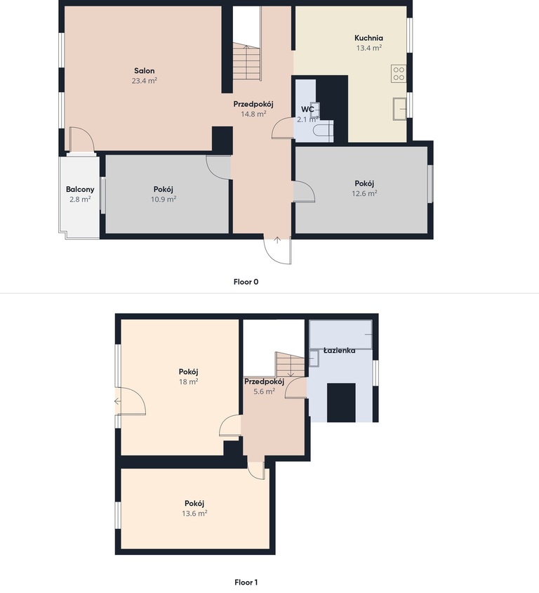 * 2 sypialnie – 13 m² i 12 m² (w jednej aktualnie garderoba z szafami typu Komandor)