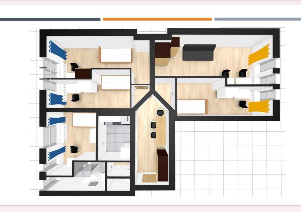 - pięciu pokoi (cztery jednoosobowe oraz jeden dwuosobowy),