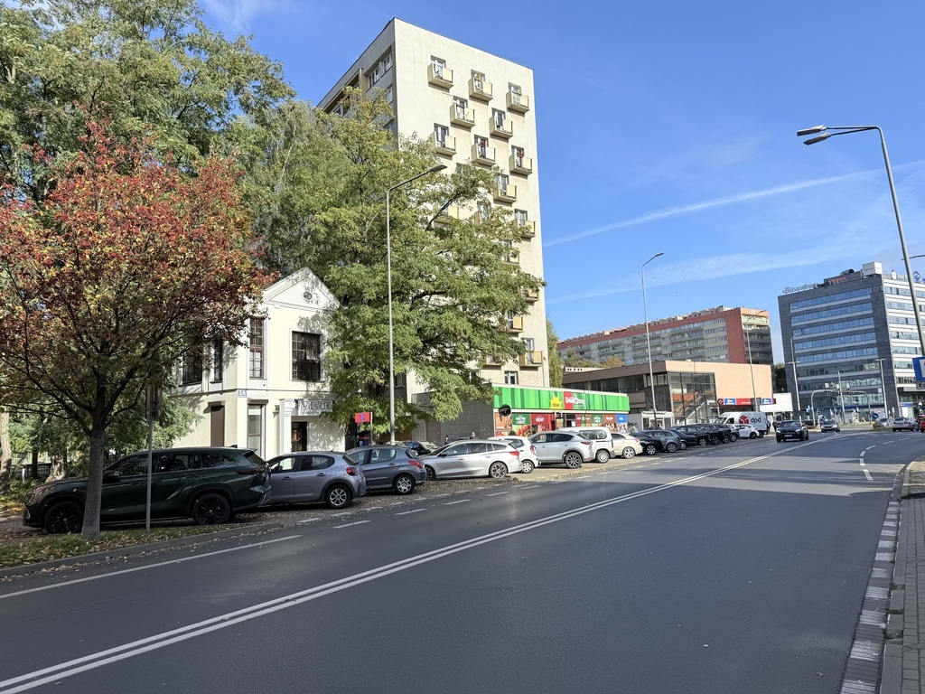dobrze widoczny, przy budynku miejsca parkingowe - strefa płatnego parkowania.