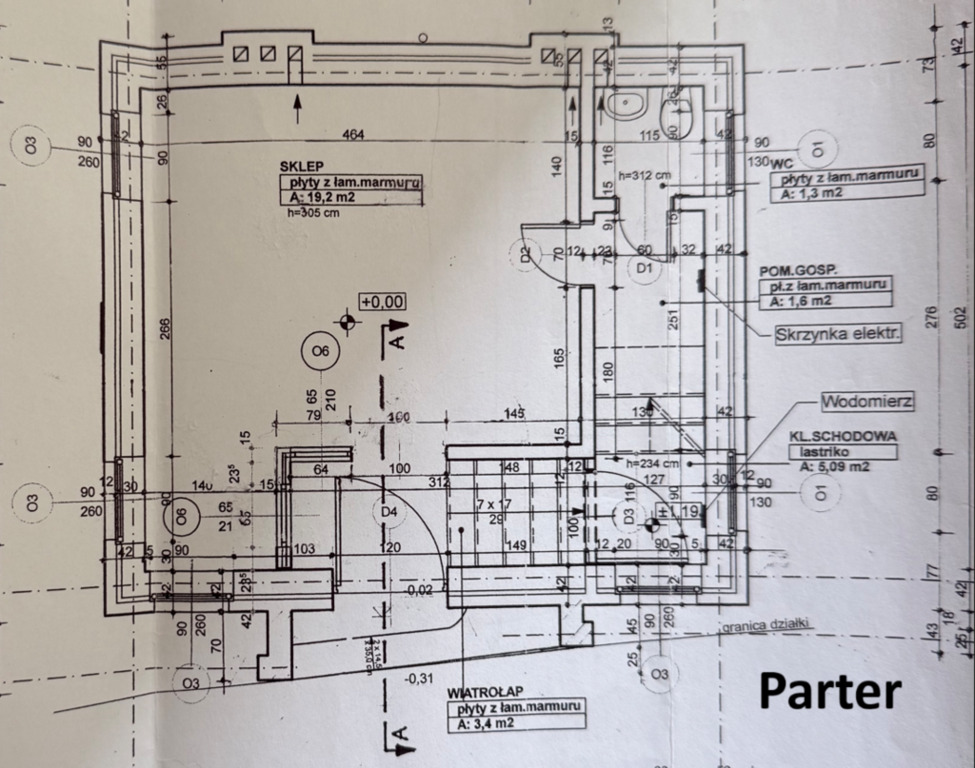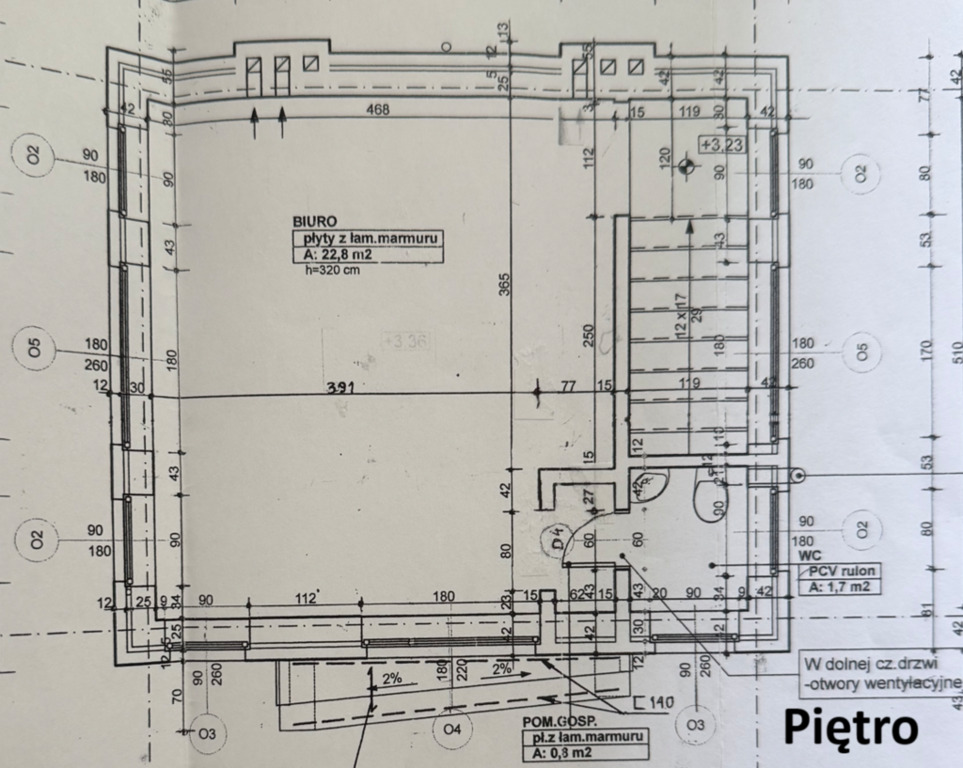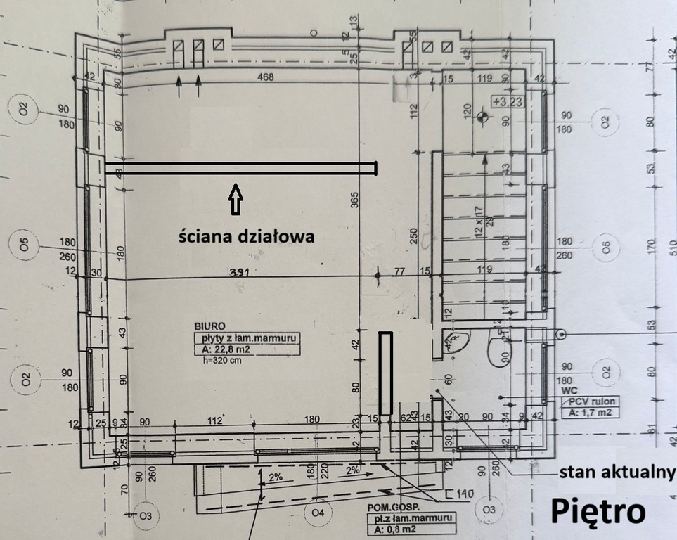 - ściany działowe murowane z cegły dziurawki 12cm a część z płyt kartonowo-gipsowych