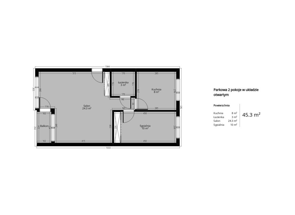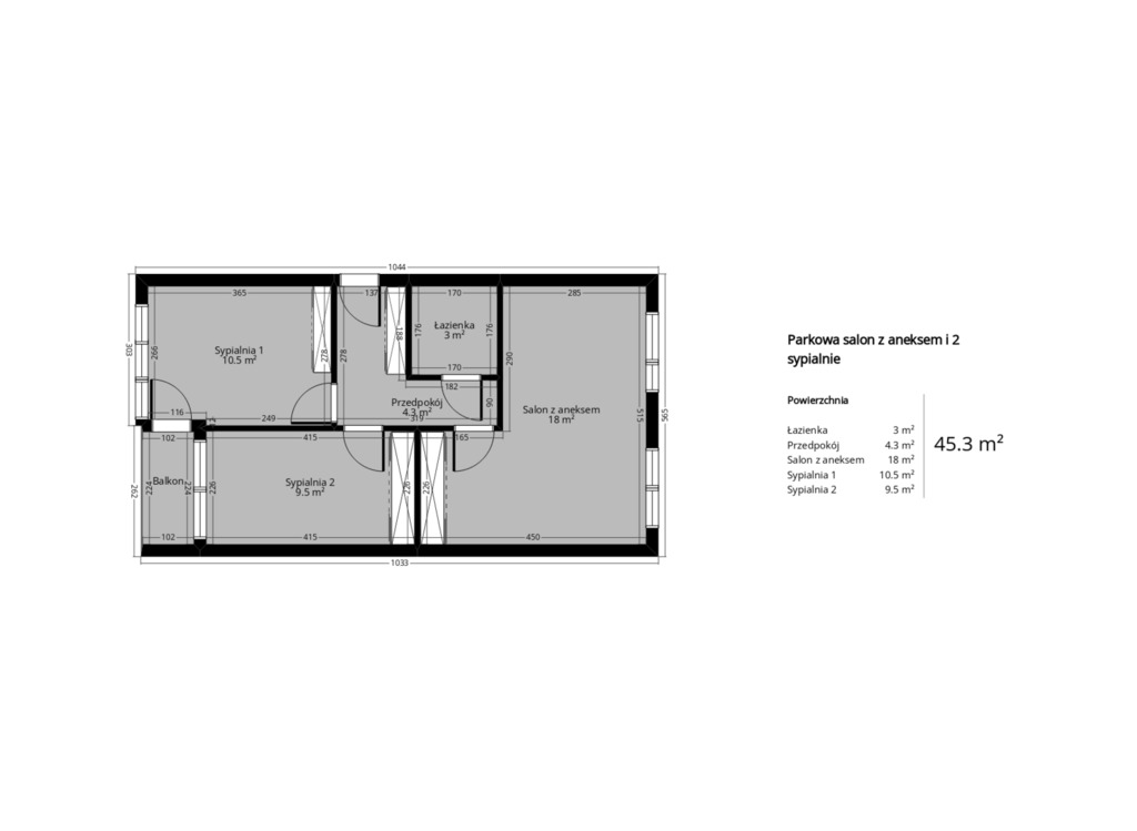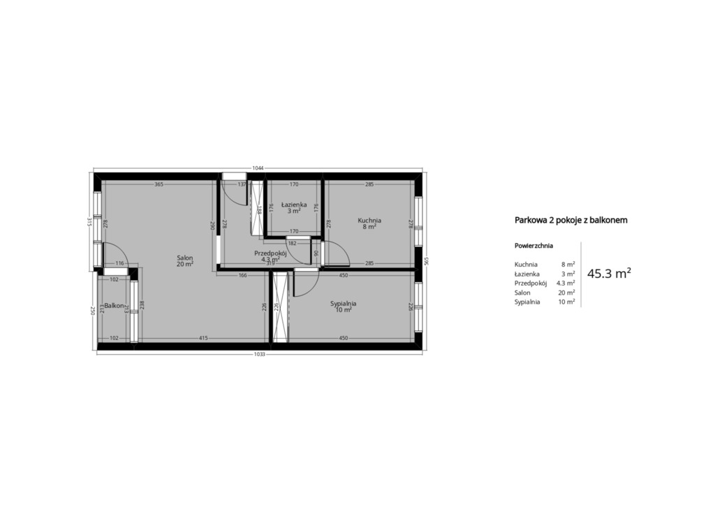 - uzyskanie rozkładowych 3 pokojów poprzez podzielenie salonu na 2 mniejsze