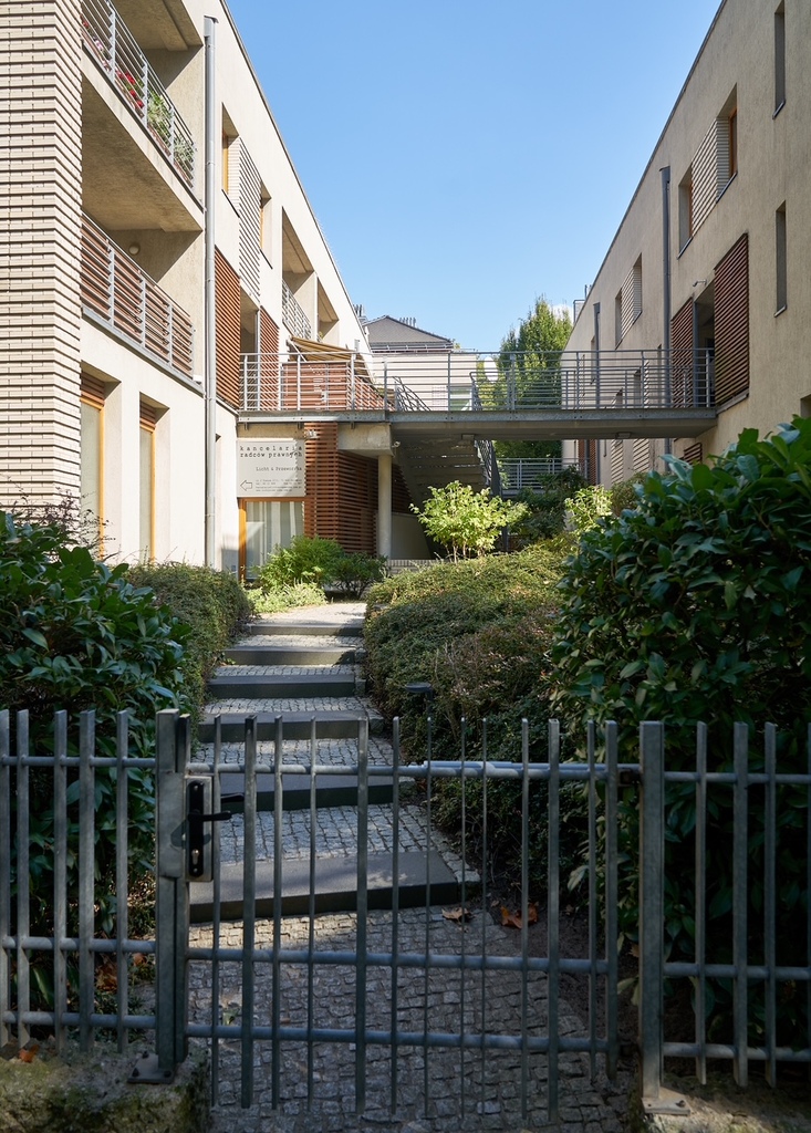 Mieszkanie znajduje się na drugim piętrze kameralnego budynku z 2004 roku, wyposażonego w windę. Lokal usytuowany jest od strony dziedzińca, z ekspozycją południowo-wschodnią, co gwarantuje ciszę i doskonałe nasłonecznienie przez cały dzień.