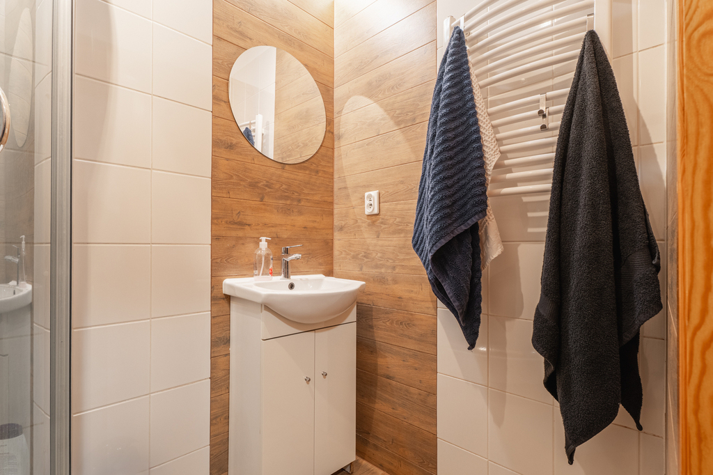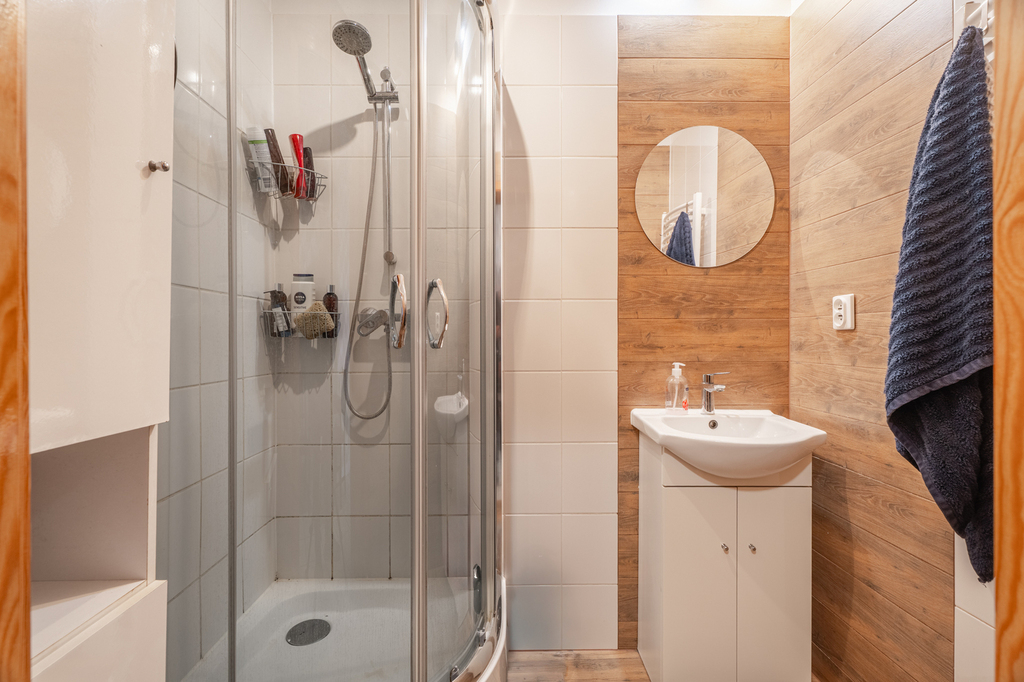 - łazienka z kabiną prysznicową,