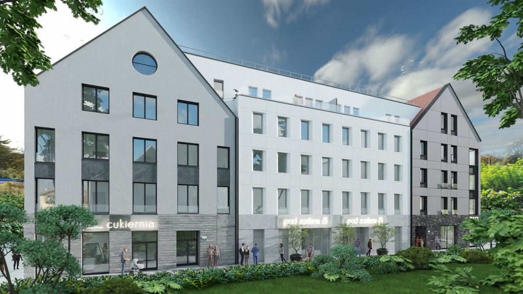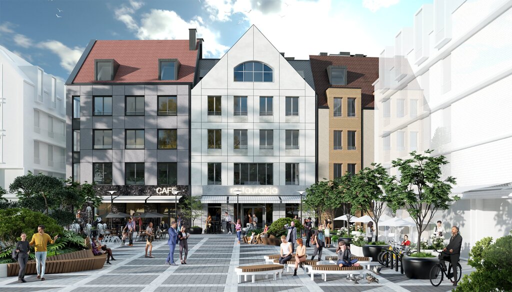 Zwarta bryła pięciokondygnacyjnego budynku nawiązuje do historycznej zabudowy dawnego miasta. Piękne i efektowne elewacje apartamentowca z wykorzystaniem wysokiej jakości naturalnych materiałów kamiennych i ceramicznych, duże przeszklenia okien i dachy z pokryciem ceramicznym czynią unikalny charakter miejsca. Nasza zabudowa wraz z budynkami przyległymi tworzy wyjątkowo ciepły i przyjazny staromiejski klimat.