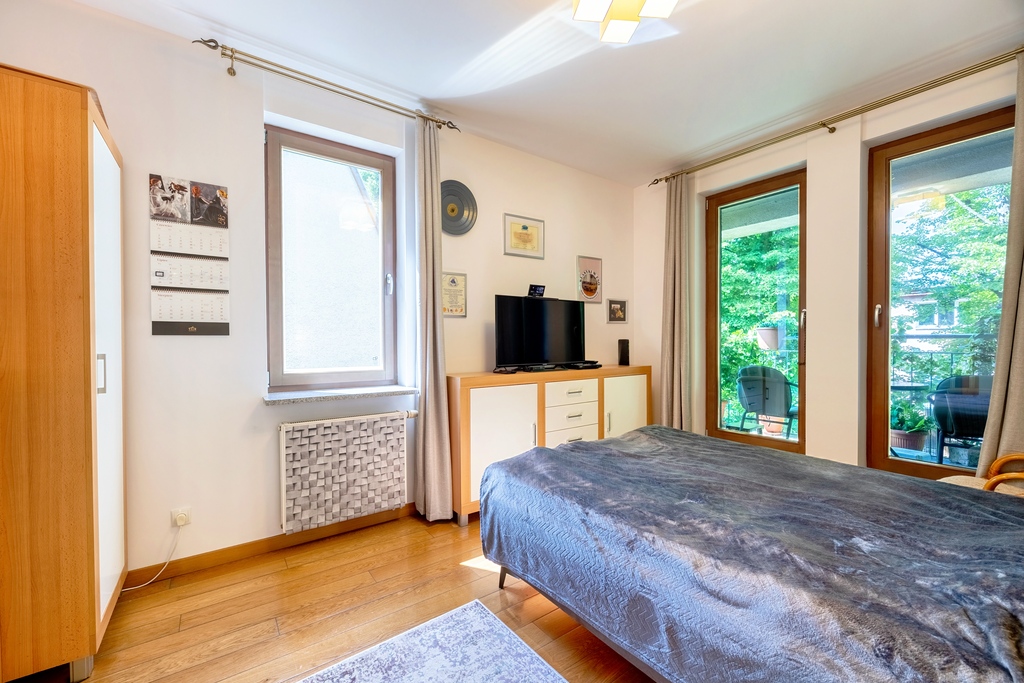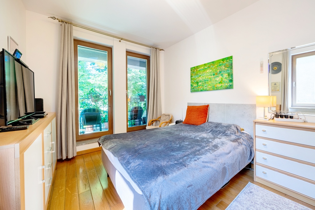 miejskieLuksus i komfort na wyciągnięcie rękiMieszkanie, w którym każdy detal został dopracowany, by zapewnić najwyższy komfort codziennego życia. Duże, panoramiczne okna pozwalają cieszyć się widokiem na zieleń i dają poczucie przestronności. Dzięki wysokim sufitom (2,90 m), wnętrza wydają się jeszcze bardziej przestronne, co dodatkowo podkreśla elegancki charakter tego apartamentu.