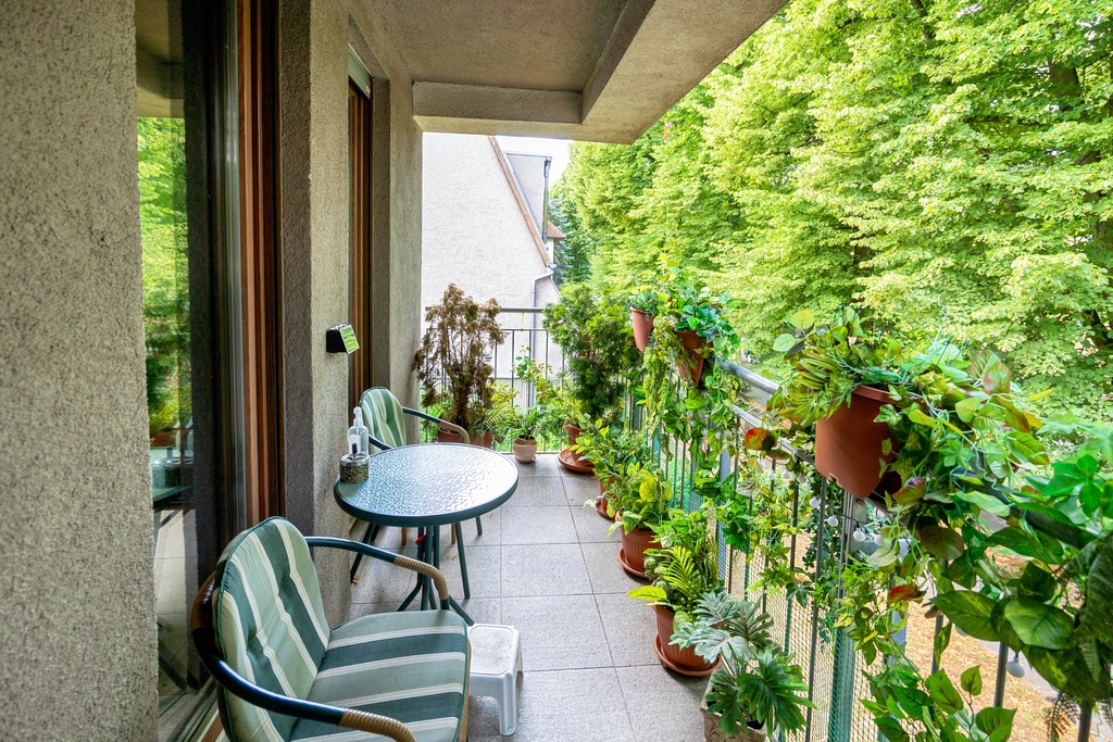 Balkon: wyjście z salonu oraz z sypialni głównej