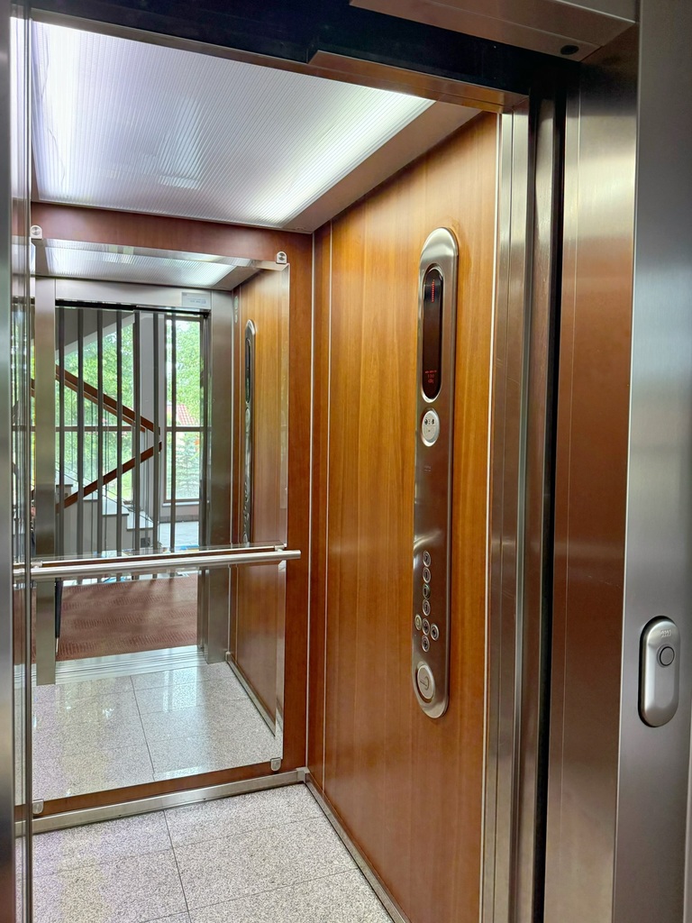 rampą przed klatką, co stanowi ogromne udogodnienie m.in. dla osób z wózkami dziecięcymi lub o ograniczonej mobilności. Winda zapewnia bezproblemowy dostęp do mieszkania – także z poziomu garażu.