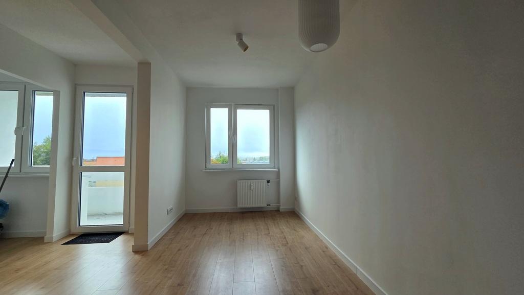 - Ściany w gładzi, nowe panele podłogowe oraz nowe oświetlenie w całym mieszkaniu.