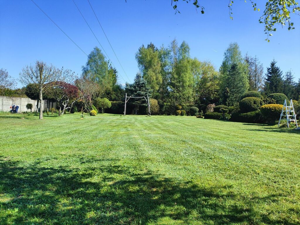 Działka pięknie zagospodarowana (drzewa liściaste i iglaste, krzewy owocowe, borówka amerykańska), ogrodzona żywopłotem z  bramą wjazdową  i furtką.