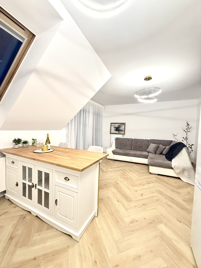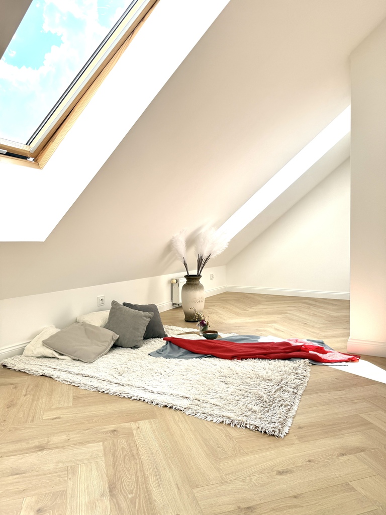 - Antresola (7,05 m²): Uwaga! jako trzeci pokój zgodnie z KW!, doskonała przestrzeń do pracy lub zabaw dla dzieci.