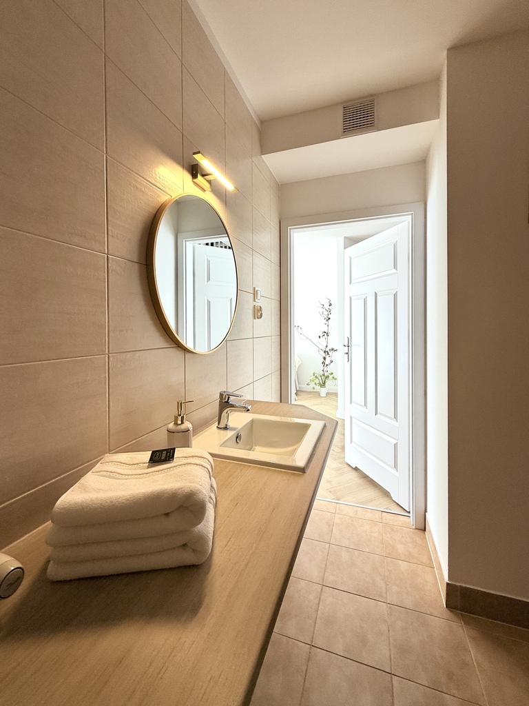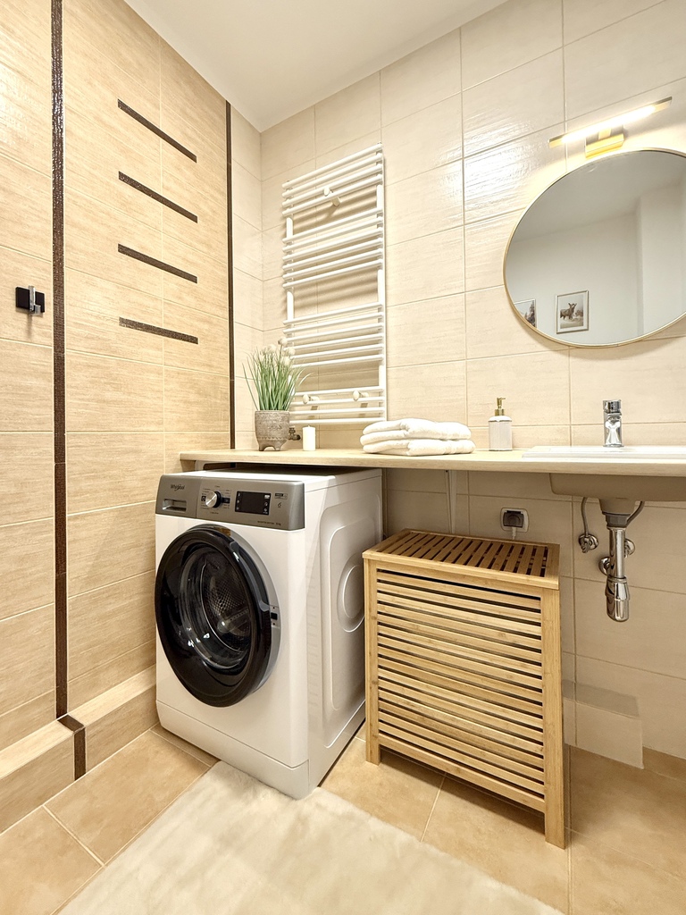 - Łazienka (5,03 m²): nowoczesna z prysznicem, spełniająca wszystkie potrzeby codziennego użytku.