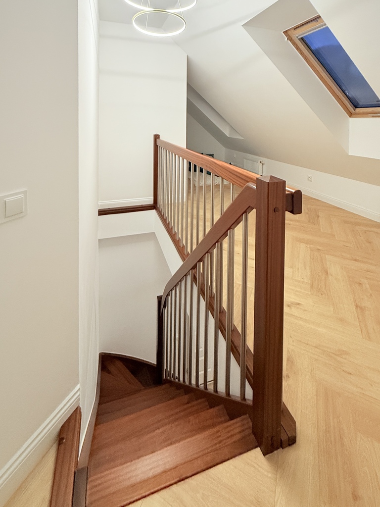 - Otwarty, jasny korytarz i schody na piętro, dodają przestrzeni i uroku.