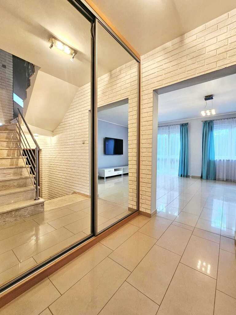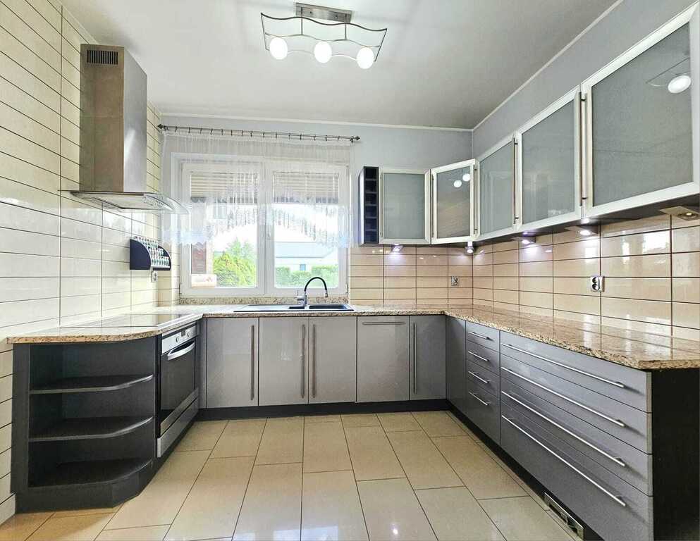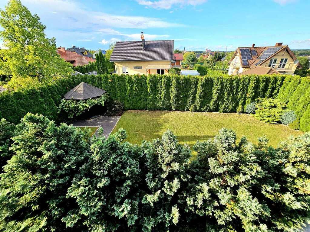 Nieruchomość usytuowana na działce o łącznej powierzchni 808 m². W najbliższym otoczeniu zabudowa niska, wolnostojąca i jednorodzinna.Na powierzchnię parteru budynku, pełniącego jednocześnie rolę strefy dziennej domu, składają się: kuchnia z jadalnią, przestronny salon z którego wychodzi się na taras oraz zaaranżowany ogród, łazienka z wc, pomieszczenie sanitarno - gospodarcze z bezpośrednim wejściem do garażu (2. stanowiskowy, z bramą otwieraną na pilota), korytarz i wiatrołap. Na piętro nieruchomości prowadzą piękne, marmurowe schody (Breccia). W górnej części domu, pełniącej głownie strefę nocną, stanowią 3. sypialnie, pokój wielofunkcyjny, główna łazienka z wc oraz korytarz.