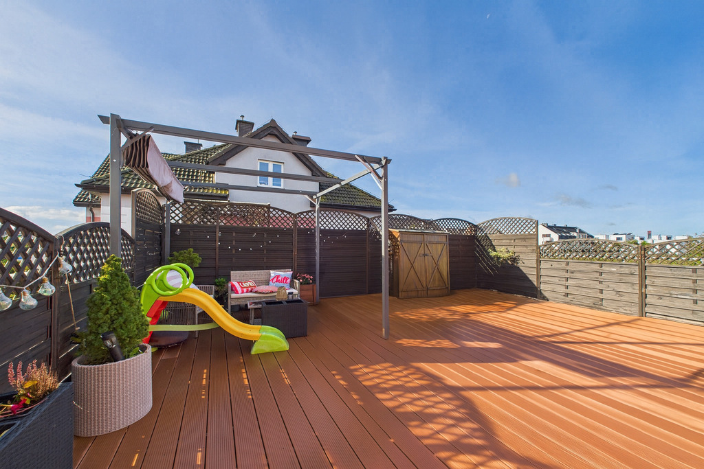 - Jasny, przestronny salon z bezpośrednim wyjściem na balkon o powierzchni 9 m2 oraz taras o powierzchni 50 m2