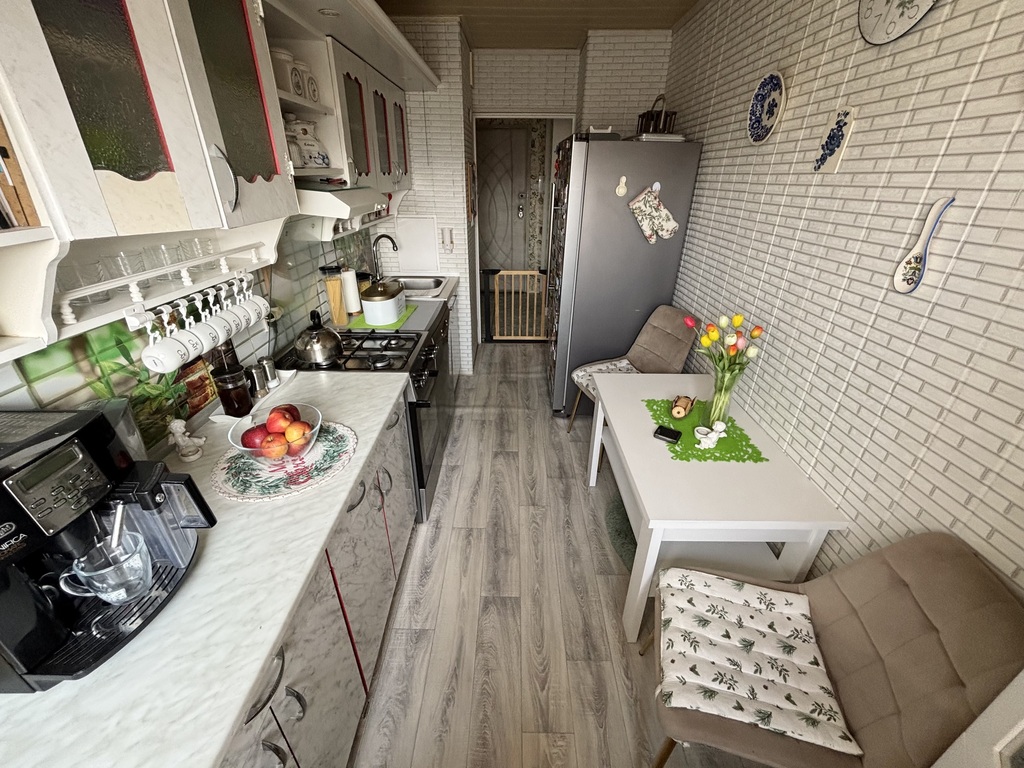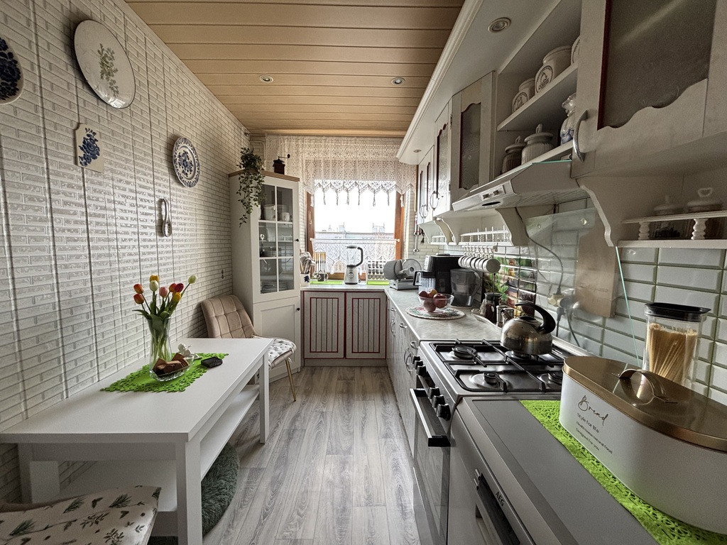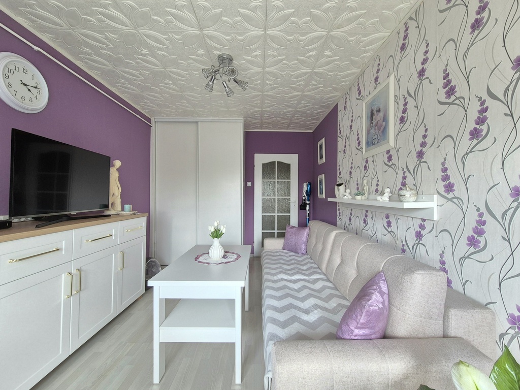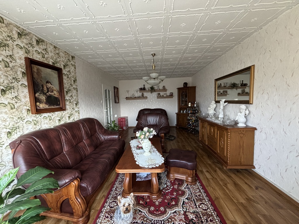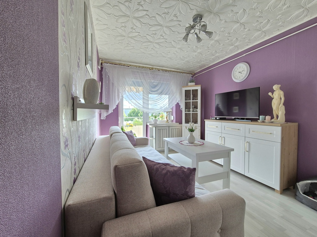 Mieszkanie jest ciepłe, niezwykle zadbane i czyste. Ściany gładzone i tapetowane, na podłogach panele, linoleum, terakota.
