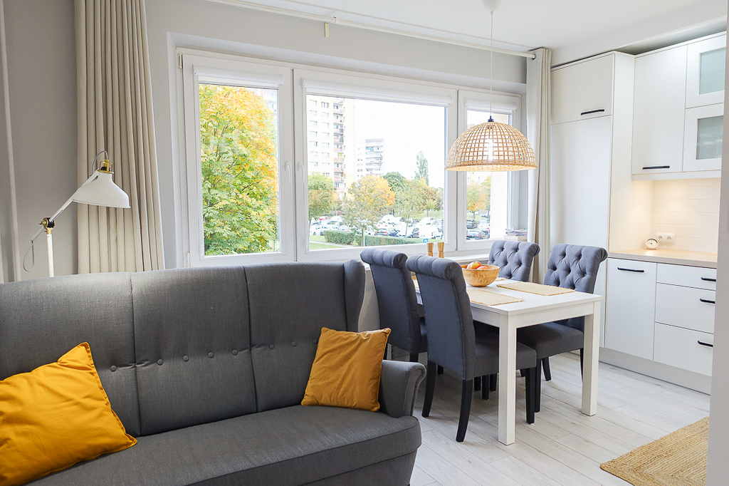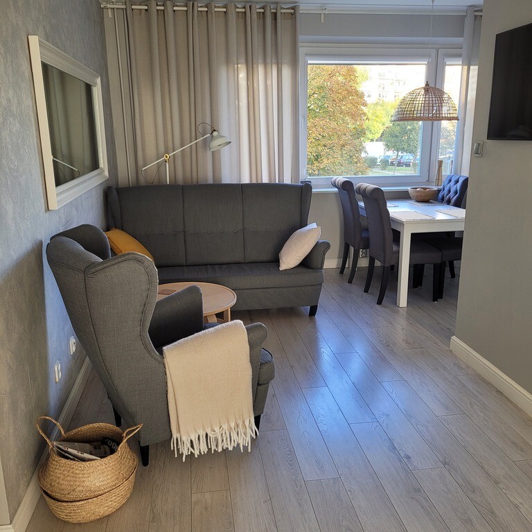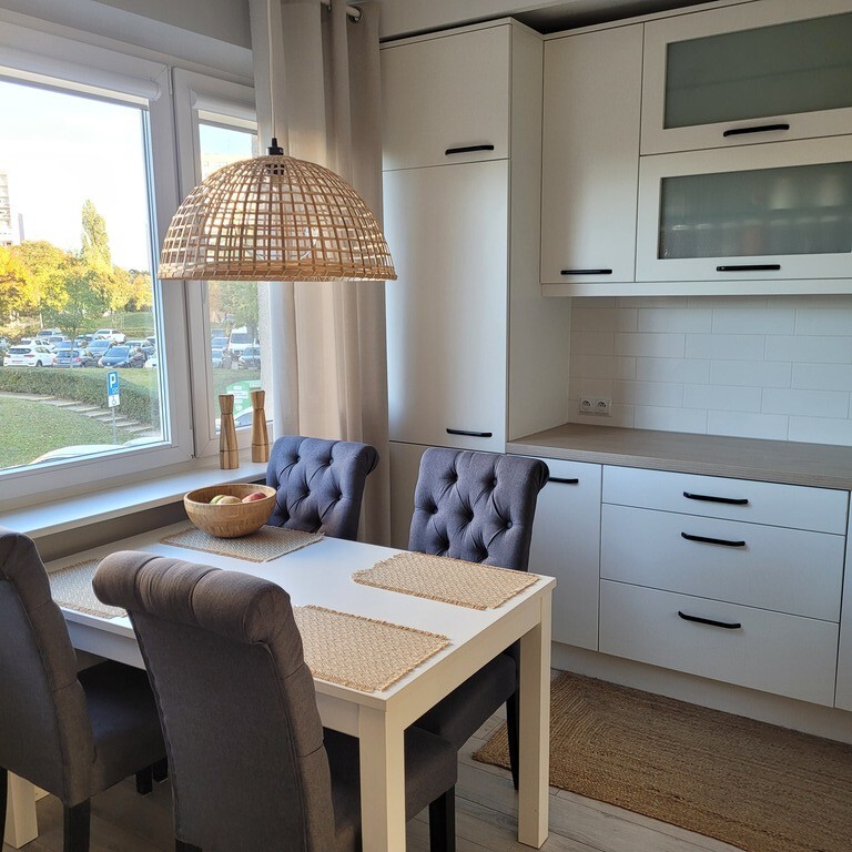 Bardzo ładnie zaaranżowane, nowocześnie urządzone, wygodne 4 - pokojowe mieszkanie po remoncie, umeblowane nowymi meblami i wyposażone w sprzęt AGD, z dużym balkonem, pozwalającym nam porano kawę, z widokiem na pobliskie jeziorko i drzewa. Powierzchnia 63,6 m2. Mieszkanie dwustronne z oknami od północnego wschodu i południowego zachodu. I piętro niskiego budynku przy ul. Jasnej. Meble i urządzenia bez dodatkowych opłat.