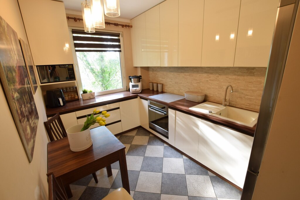 - oddzielna, duża, widna kuchnia;