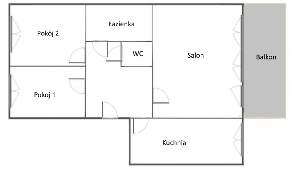Układ pomieszczeń - rozkładowy. Okna PCV, obustronna wystawa okien ( wsch/zach).