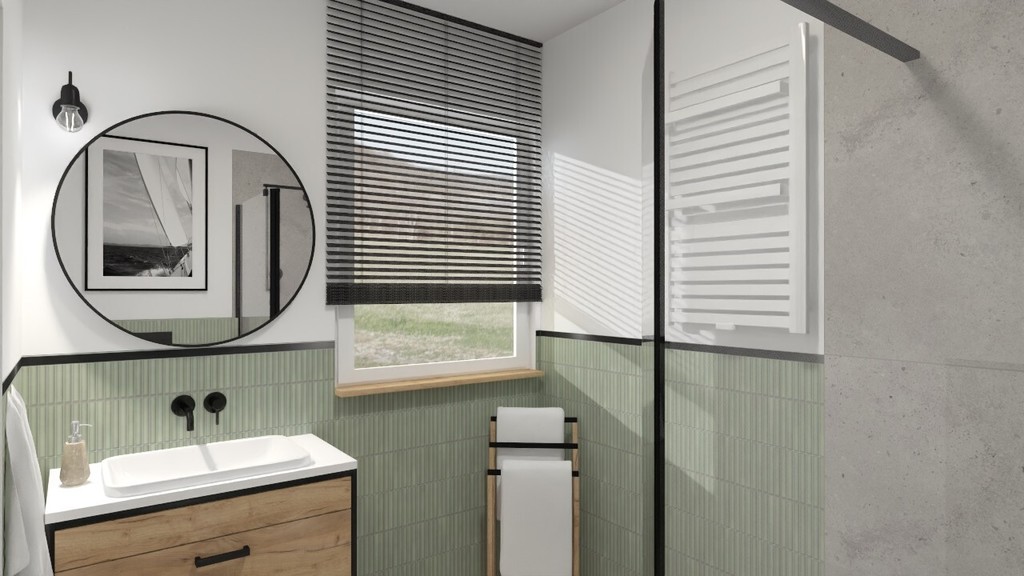 • Instalacja: powietrzna pompa ciepła z funkcją klimatyzatora, ogrzewanie podłogowe na parterze i w łazienkach, grzejniki na piętrze.