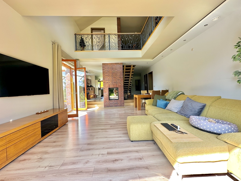 Marzysz o przestronnym, eleganckim domu, w którym połączono nowoczesne technologie z naturalnym pięknem? Szukasz miejsca, gdzie każdy dzień zaczyna się od widoku zieleni, a wieczory spędzasz przy ciepłym kominku? Ta oferta jest dla Ciebie!