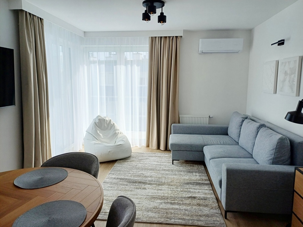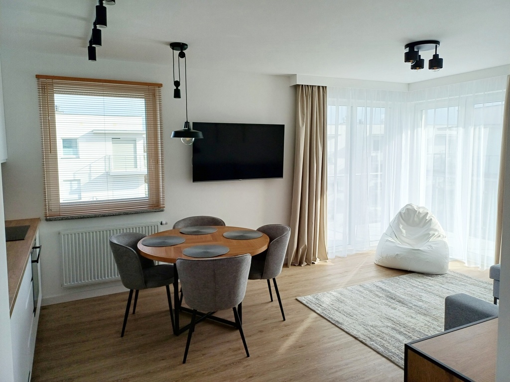 Na wynajem komfortowe nowe, w pełni wyposażone mieszkanie o powierzchni 41 m² z przestronnym balkonem 12 m², położone w spokojnej, uzdrowiskowej dzielnicy w Kołobrzegu.