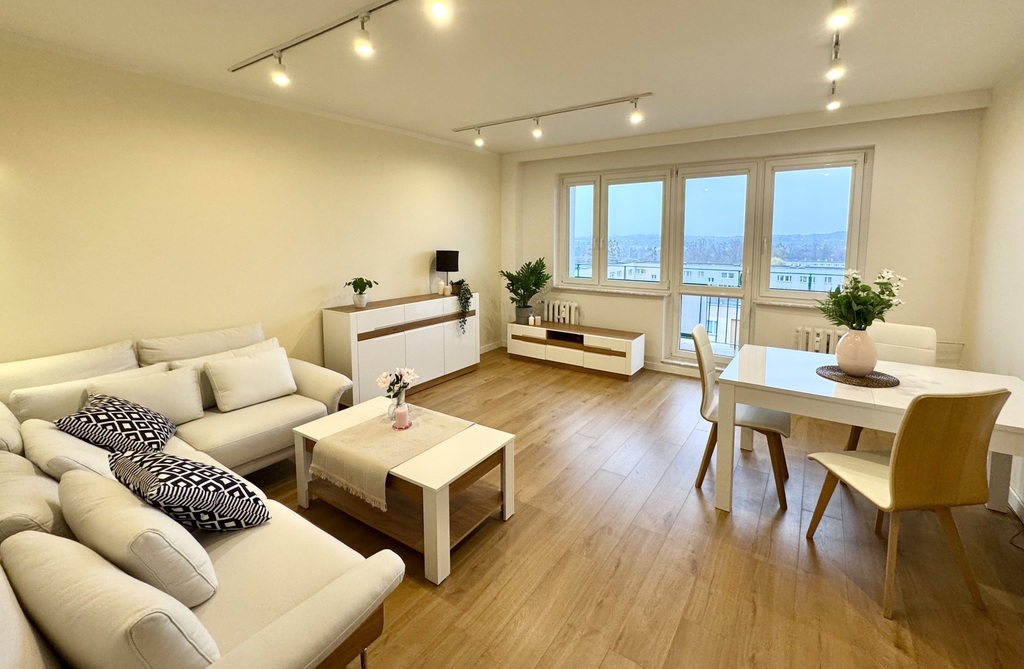 Lokal po kapitalnym remoncie, podczas którego wymieniono panele, instalację elektryczną oraz wygładzono ściany i sufity. Zamontowano oświetlenie sterowane pilotem, umożliwiające indywidualne dostosowanie poziomu jasności. Mieszkanie jest w pełni umeblowane, wyposażone w sprzęt AGD i światłowód, gotowe do zamieszkania.