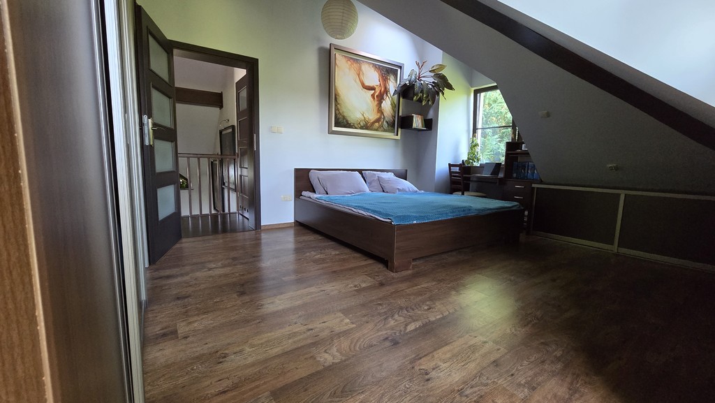 Ten przestronny, nowoczesny i zadbany dom wolnostojący o powierzchni całkowitej 204 m² został ukończony w 2012 roku z najwyższej jakości materiałów, z dbałością o każdy detal. Dzięki 4 sypialniom, 2 łazienkom i dodatkowej toalecie idealnie sprawdzi się dla rodziny, ale również jako dom z oddzielnym aneksem gościnnym.
