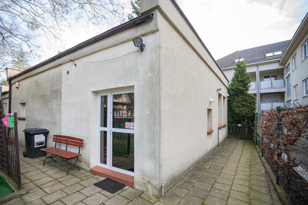 Drugi — parterowy budynek usługowo-biurowy z lat 60-tych, obecnie przystosowany jako przedszkole, o powierzchni około 111 m² i osobnym wejściu — daje niezwykle szeroką możliwość adaptacji pod gabinety lekarskie, usługi kosmetyczne, biura lub na cele mieszkalne.