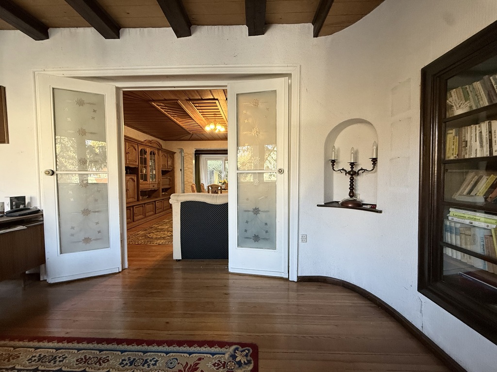 Dom o powierzchni ok. 140 m² obejmuje przyziemie z pokojem i łazienką oraz pomieszczeniami gospodarczymi, parter z dwoma dużymi pokojami (w tym jeden z wykuszem), kuchnią, łazienką, garderobą, hall`em i zabudowaną werandą, piętro z dwoma pokojami, łazienką, balkonem od strony ogrodu oraz użytkowy strych — wnętrza zachowały wiele oryginalnych detali, takich jak drewniane sufity i podłogi, co pozwala na stworzenie wnętrza z charakterem. Budynek wymaga modernizacji i aranżacji według własnej wizji, co stanowi otwartą przestrzeń dla przyszłego właściciela.