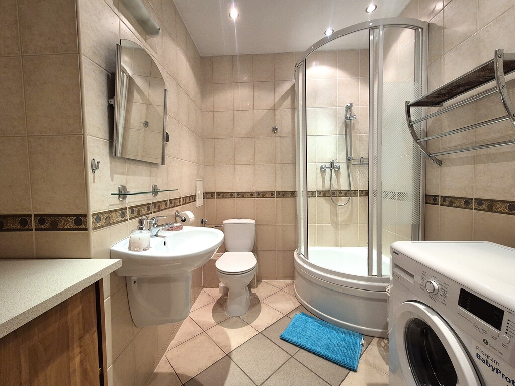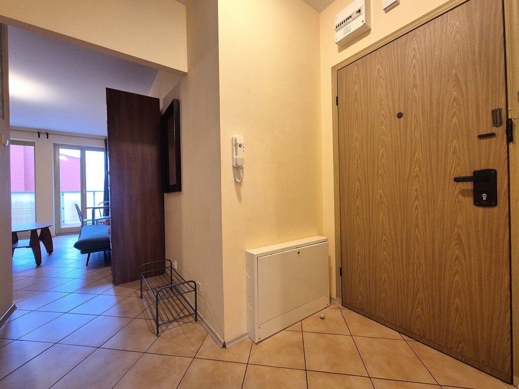 - salon z aneksem kuchennym (szafki kuchenne i sprzęt AGD pozostaje na wyposażeniu). Z salonu wyjście na balkon.