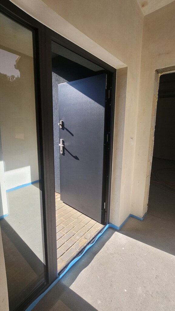 - drzwi antywłamaniowe z dużym przeszkleniem typu lustro weneckie