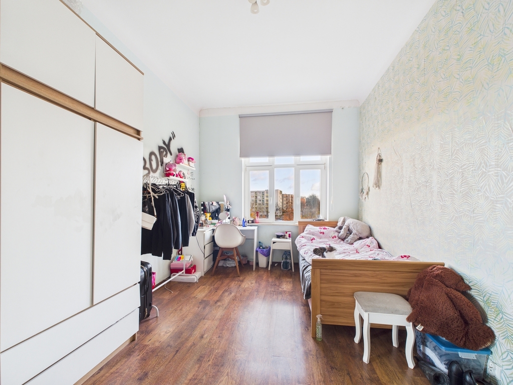 Okna PCV. Ściany częściowo malowane oraz tapeta.