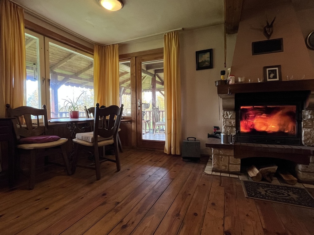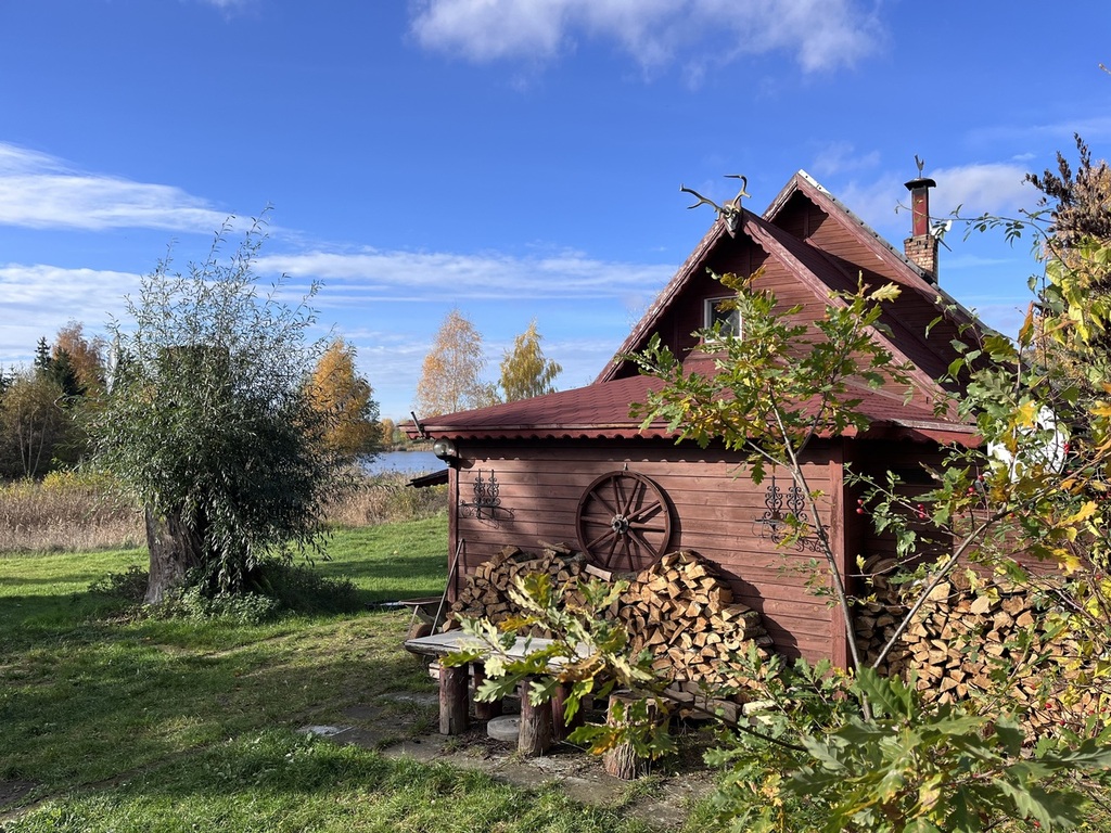 • Drewniany dom całoroczny o dwóch kondygnacjach, w pełni wyposażony i podpiwniczony: