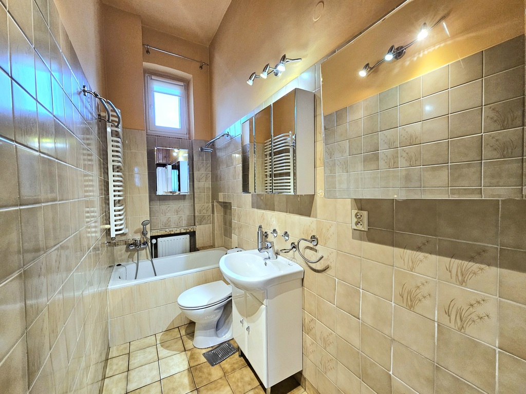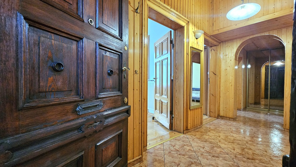 Wnętrze zachowało oryginalny charakter kamienicy – w bardzo dobrym stanie utrzymane są fragmenty oryginalnej drewnianej stolarki okiennej oraz piękna drewniana podłoga. Pozostała część okien została wymieniona na okna PCV, co zapewnia lepszą izolację i komfort użytkowania. Wysokie sufity nadają pomieszczeniom wyjątkowej przestronności i elegancji, a okna wychodzące na dwie strony świata gwarantują świetne doświetlenie o każdej porze dnia. Mieszkanie jest w stanie dobrym i daje możliwość własnej aranżacji według indywidualnych preferencji.