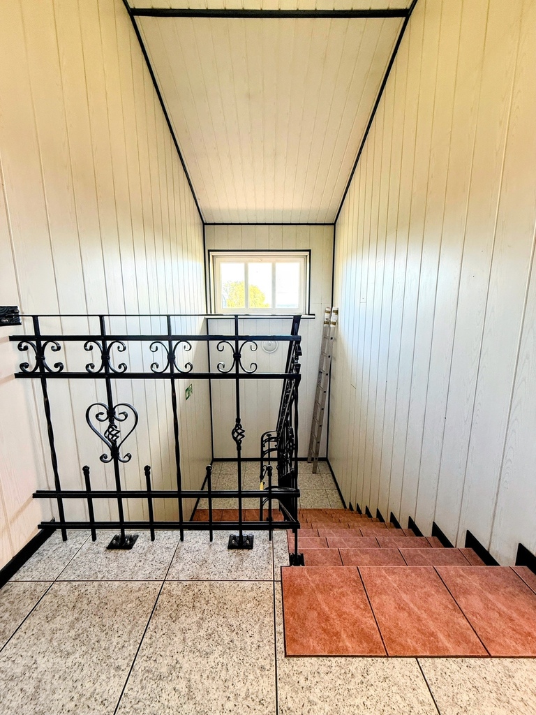 Część biurowa to 5 pokoi, duża łazienka i kuchnia.