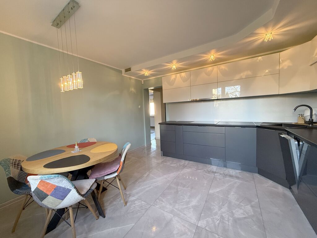 Kuchnia przestronna, z nowoczesną zabudową oraz sprzętem AGD, które pozostają w cenie (bez lodówki).