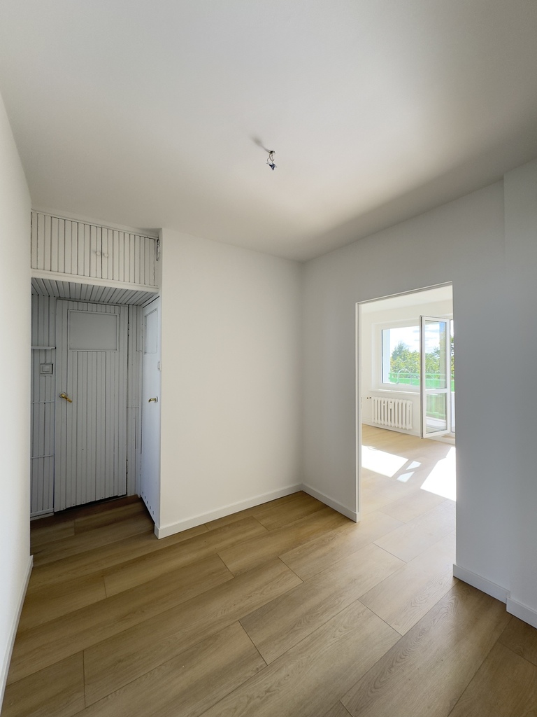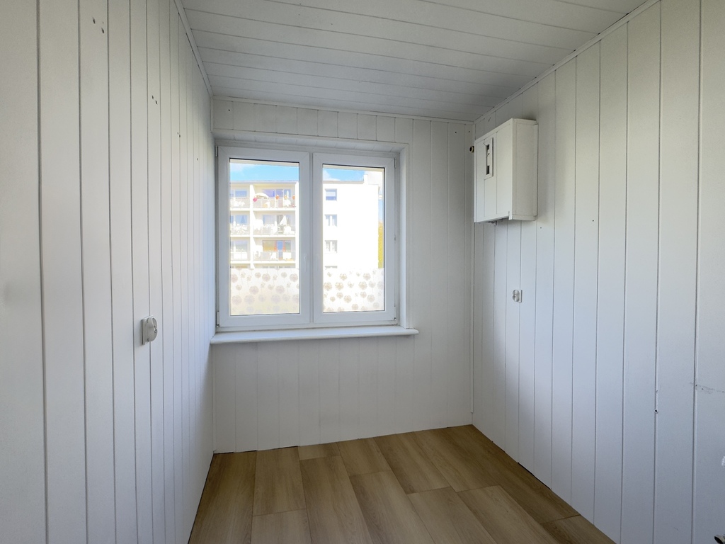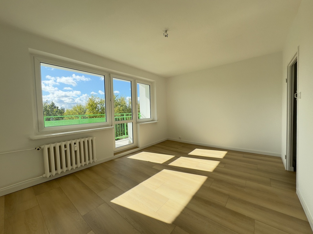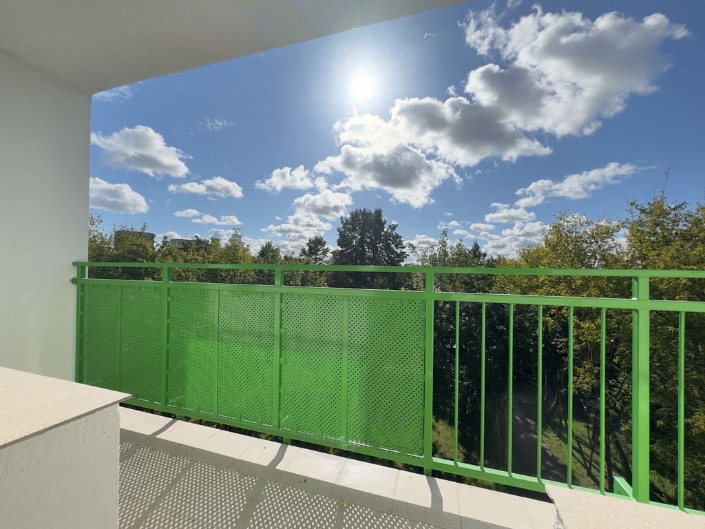 Mieszkanie składa się z dwóch niezależnych pokoi, osobnej kuchni z oknem, przedpokoju, łazienki oraz oddzielnej toalety. Dużym atutem jest przestronny balkon, z którego rozpościera się widok na zieleń i osiedlową przestrzeń. Dzięki dwustronnej ekspozycji okien (wschód–zachód) mieszkanie jest doskonale doświetlone przez cały dzień – rano słońce zagląda do kuchni i sypialni, a po południu rozświetla salon.