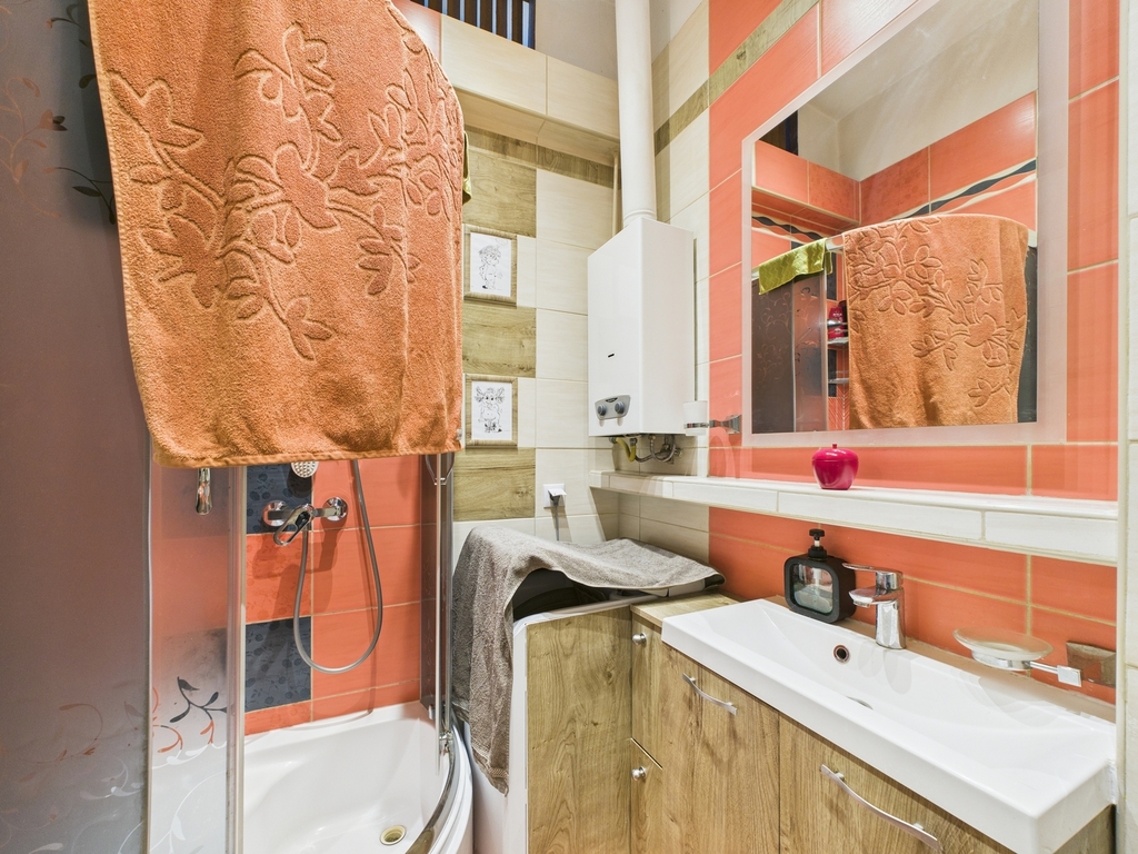 Mieszkanie jest gotowe do zamieszkania. Wyróżnia je ciekawa aranżacja z wykorzystaniem antresoli, dzięki czemu zyskano dodatkową przestrzeń użytkową. Wysokie pomieszczenia i duże okna zapewniają dobre doświetlenie przez cały dzień. Wnętrza utrzymane w zdecydowanych kolorach, co nadaje im indywidualny charakter – przy odświeżeniu z łatwością można nadać im nowy styl.