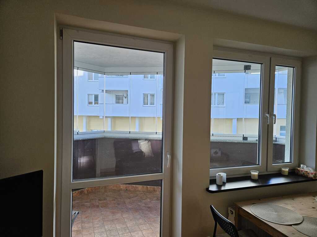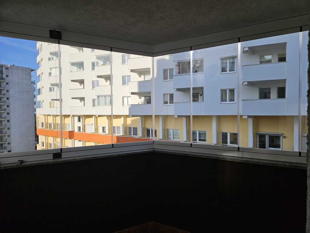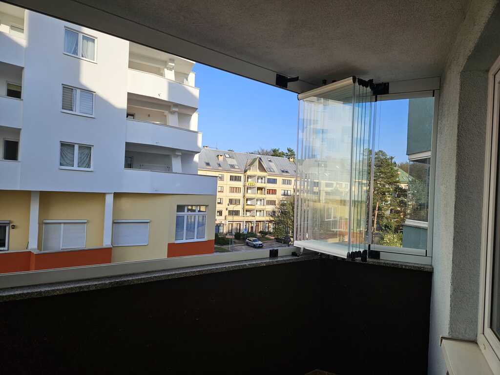 *na balkonie wykonano bezramowy system zabudowy balkonu typu fińskiego-