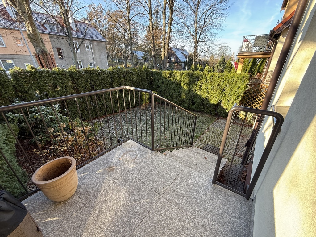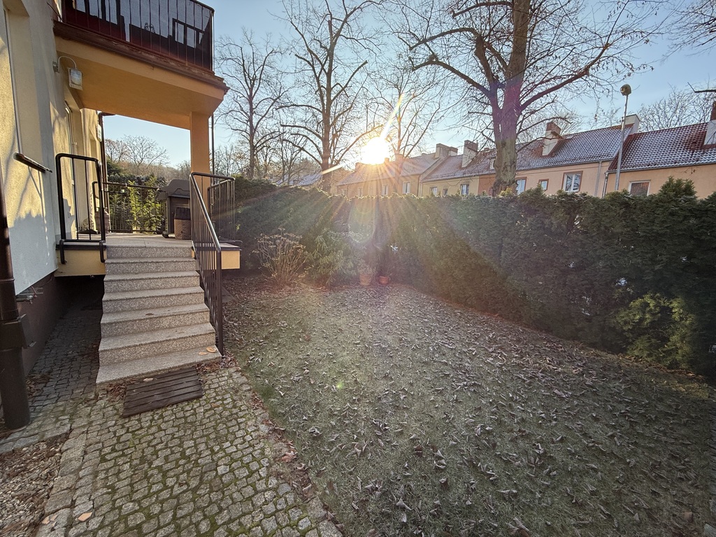 Do mieszkania przynależy ogrodzona, w pełni zagospodarowana działka o powierzchni 90 m². Liczne nasadzenia, wysoka zieleń (tuje) oraz miejsce na grill tworzą idealną przestrzeń do wypoczynku.