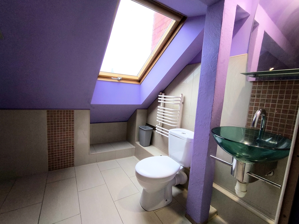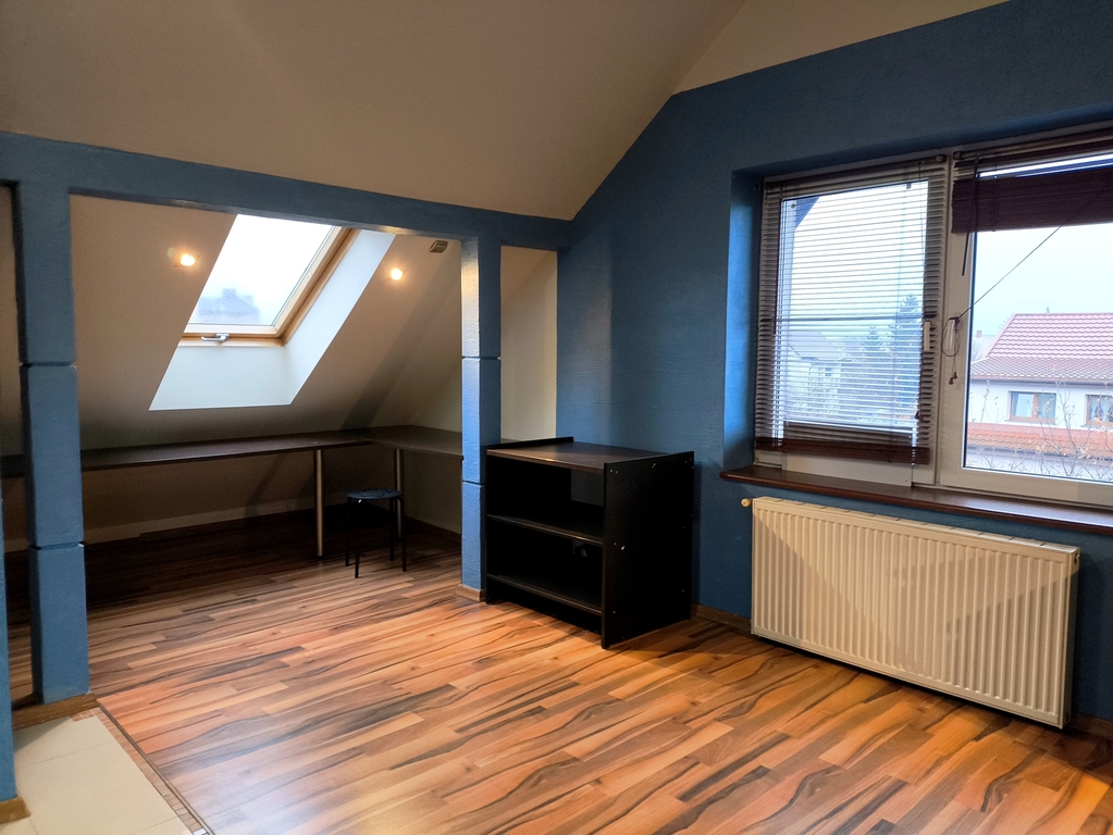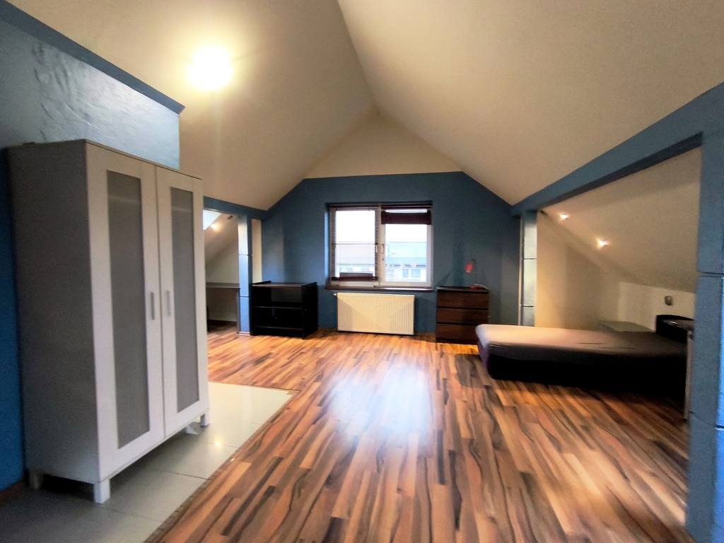 Poddasze: Duży, otwarty pokój z łazienką.