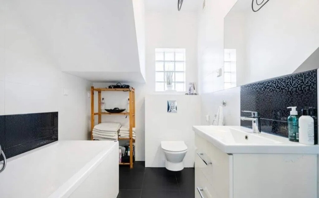 Woda i kanalizacja miejska.  Okna trzyszybowe, plastikowe. Łazienka (dolna) wyposażona w wannę. Podłogi wykończone gresem. Dach pokryty dachówka ceramiczną.