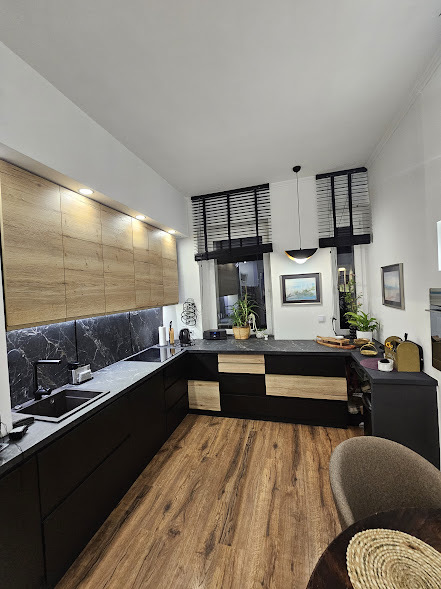 Lokal łączy klasyczny charakter kamienicy (wysokie sufity) z nowoczesnym ,funkcjonalnym wykończeniem.