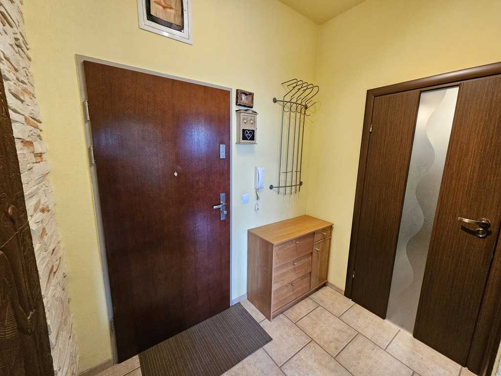 Mieszkanie rozkładowe o powierzchni 42,6m2 składa się z pokoju z aneksem kuchennym 21m2, sypialni 13,5m2, łazienki z wc 4,6m2 i przedpokoju 3,7m2. Z salonu wyjście na słoneczny balkon o powierzchni 5m2, z widokiem na plac zabaw.