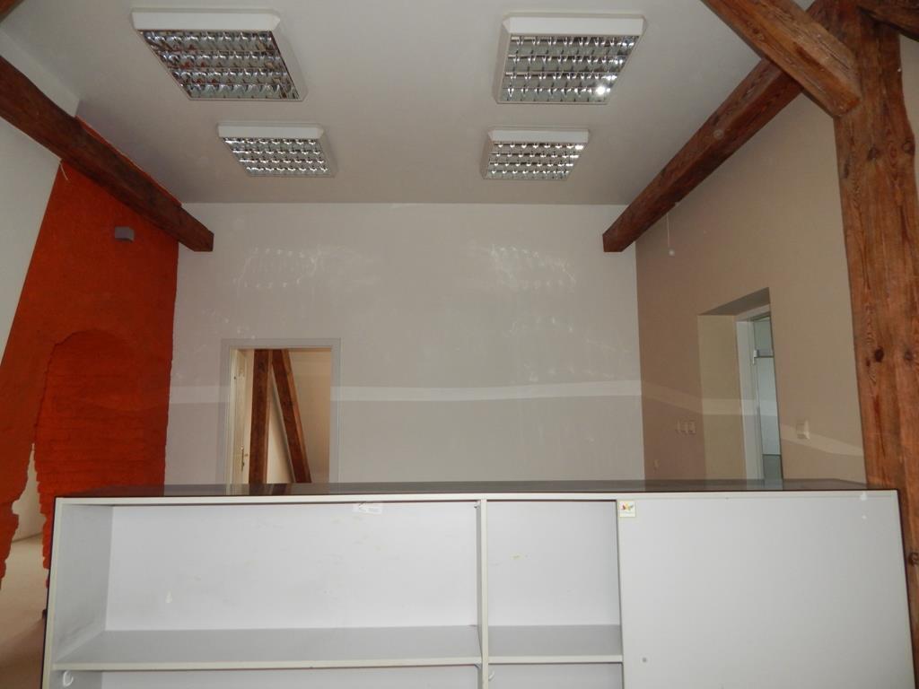 Pomieszczenia są bardzo dobrze oświetlone – powierzchnia posiada bardzo dużo okien. Ściany gładzone i świeżo pomalowane, na podłodze wykładzina PCV. Sufity z zamontowanym oświetleniem rastrowym.